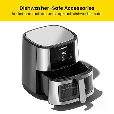 Thông tin sản phẩm CHEFMAN Easy-View Air Fryer – 8 Qt Family Size with Viewing Window, One-Touch Digital Control with 4 Presets, Nonstick & Dishwasher Safe, Broil, Roast, Dehydrate, Bake, Auto-Shutoff, Stainless Steel