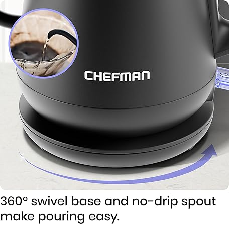 Sản phẩm Chefman Gooseneck Electric Kettle, 0.8L Pour Over Tea Kettle for Coffee and Tea, One-Touch Operation, Boil-Dry Protection, Auto Shut-Off, Ultra-Fast Hot Water Boiler – Black đang được bán với giá ưu đãi là $30.5091 tại nước Mỹ.