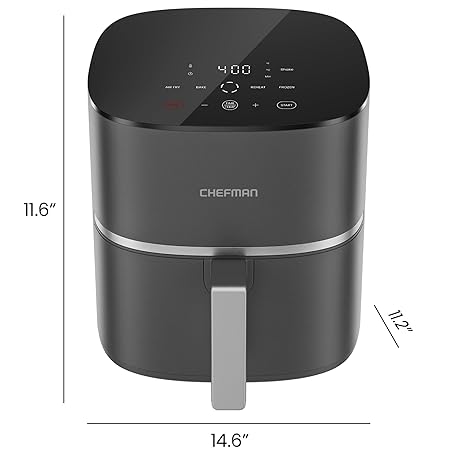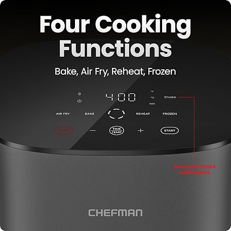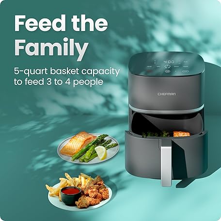 Thông tin sản phẩm Chefman TurboX 4-in-1 Air Fryer, 5-Quart Airfryer for Extra Crispy Chicken, Fries, Wings, and More, Air Fry, Bake, Reheat, and Frozen Functions, Digital Touch Controls, Dishwasher Safe - Gray