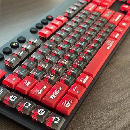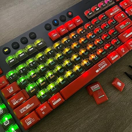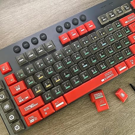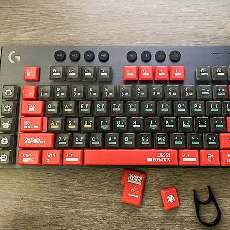 Chemical Element Gaming Theme Dual Color PBT Keycaps Suitable for Logitech G815 G813 G913 G915 TKL RGB Mechanical Keyboards. (109 Keys,Red and Transparent Black)