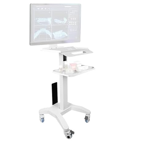CHENNTAI Dental Clinic Cart, with Two Trays and Scanner Holder Medical Trolley on Wheels Featuring Silent Anti-Skid Design and Durable Metal Construction for Hospitals and Labs