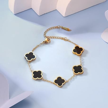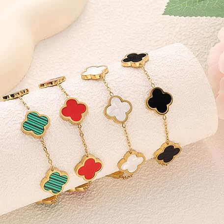 Sản phẩm Women's Four Leaf Clover 18K Gold Plated Lucky Bracelet, White/Black/Red/Blue Four Leaf Flower Adjustable Bracelet Women's Fashion Jewelry Gifts đang được bán với giá ưu đãi là $9.7882 tại nước Mỹ.