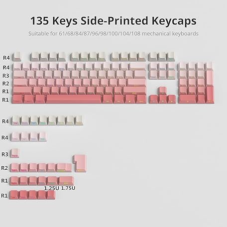Thông tin sản phẩm Cherry Profile Side Printed PBT Keycaps, 135 Key Minimalist Double Shot Shine Through Custom Keycap, Gradient Key Cap for Cherry MX Switches Mechanical Keyboard (Pink/Side Print)