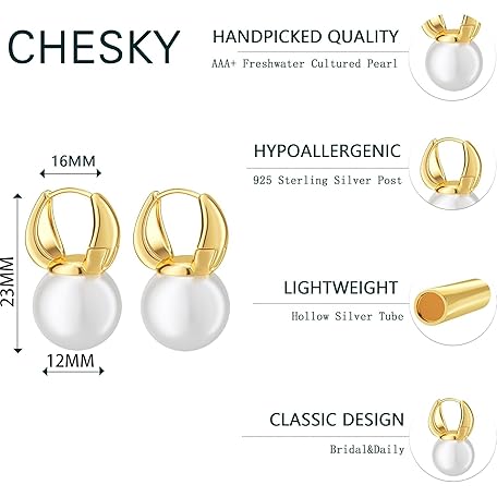 Sản phẩm CHESKY Pearl Earrings for Women, Dainty 14K Gold Plated/Silver Plated Drop Quality Handpicked AAA+ Freshwater Cultured Round Pearls Dangle Earrings Wedding Jewelry for Women Gifts đang được bán với giá ưu đãi là $15.2491 tại nước Mỹ.