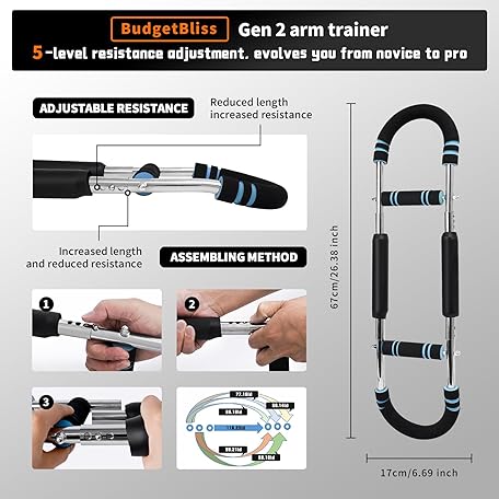 Thương hiệu BudgetBliss là cái tên nổi tiếng được rất nhiều khách hàng trên thế giới chọn lựa. Với kiểu dáng đẹp mắt, sang trọng, sản phẩm Chest Workout Equipment, Twister arm Trainer, Adjustable 5 Resistance Levels Ergonomic Home Gym Equipment, Chest Workout Equipment for Daily Fitness and Muscle Building Training là sự lựa chọn hoàn hảo nếu bạn đang tìm mua một món cho riêng mình.