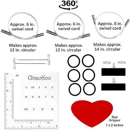Thương hiệu ChiaoGoo là cái tên nổi tiếng được rất nhiều khách hàng trên thế giới chọn lựa. Với kiểu dáng đẹp mắt, sang trọng, sản phẩm ChiaoGoo Twist Red Lace Shorties 3-Inch Large Yellow 7230-L Interchangeable Knitting Needle Set, US 9, 10, 10.5, 11 Stainless Steel with 3 Swiv360 Cables with Project Bag là sự lựa chọn hoàn hảo nếu bạn đang tìm mua một món cho riêng mình.