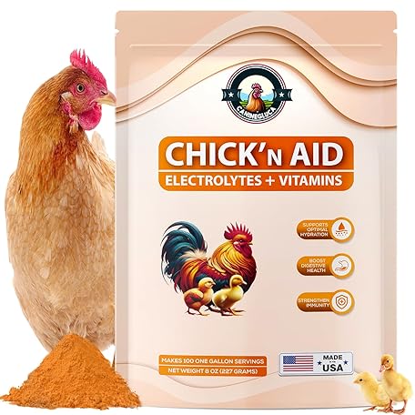 Chick’n Aid, 8 oz Essential Chicken Supplement, Ideal for Hydration, Immunity, Digestive Health. Enhanced with Poultry Vitamins, Electrolytes, and Probiotics, for Chickens, Ducks, Turkeys