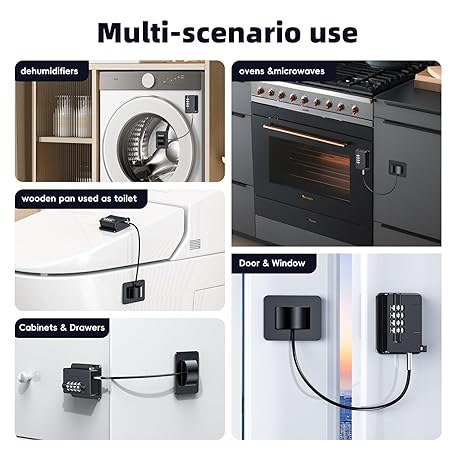 Thông tin sản phẩm Child Proof Fridge Locks with 4 Code Password, Refrigerator Combination Latch for Kids, Toddlers and Adults, Baby Proofing Freezer Door Lock for Cabinets and Drawers, Oven, Windows (Black-1pack)