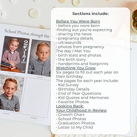 Thông tin sản phẩm Childhood Memory Book - Elegant Child Memory Book from Pregnancy to Age 18 W/Prompts, Space for Photos & More - Baby Journal (175 Pages, Dusty Rose)