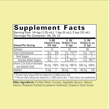 Thông tin sản phẩm CHILDLIFE ESSENTIALS Liquid Vitamin C - Pure Vitamin C Liquid Supplement for Kids, Toddlers, & Babies, Immune System Support, Natural Orange Flavor, 4 Fl Oz (Pack of 1)