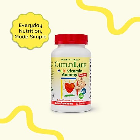 Thông tin sản phẩm CHILDLIFE ESSENTIALS Multivitamin Gummies for Kids - Children's Vitamins, Kids Multivitamins with DHA, Sugar Free - Natural Strawberry, 90 Count