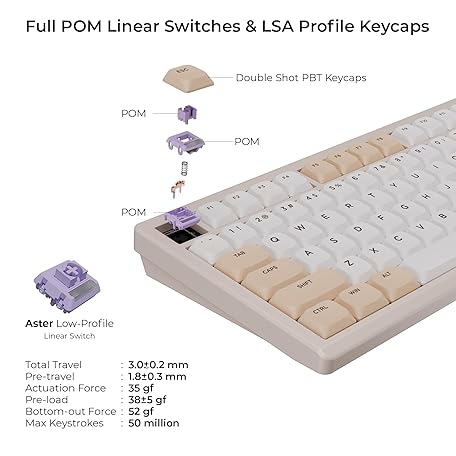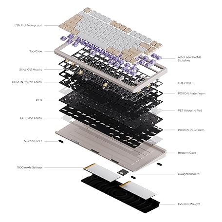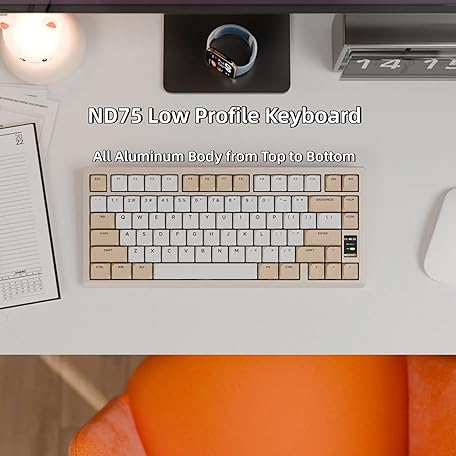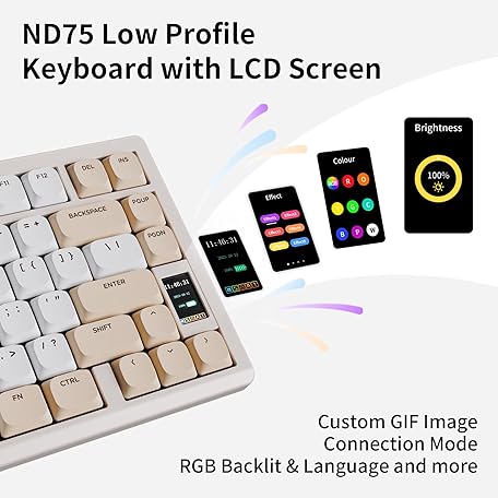Thông tin sản phẩm Chilkey ND75 LP Low Profile Keyboard: 75 Percent Wireless Aluminum Mechanical Gaming Keyboard w/Screen, Tri-Mode, Quick Disassembly, RGB Backlit Key Board for Laptop Office PC (Beige)