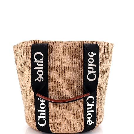 Chloe Pre-Loved x Mifuko Woody Tote Raffia Large, Neutral