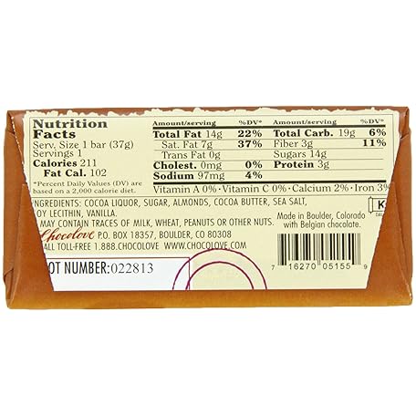 • Chocolove Chocolate Bar, Almonds & Sea Salt in Dark Chocolate, 1.3 Ounce (Pack of 12)