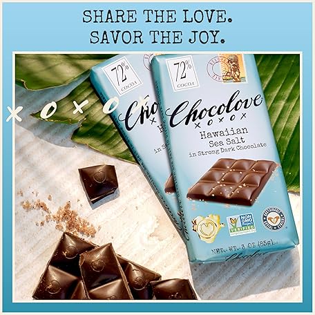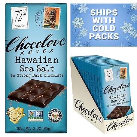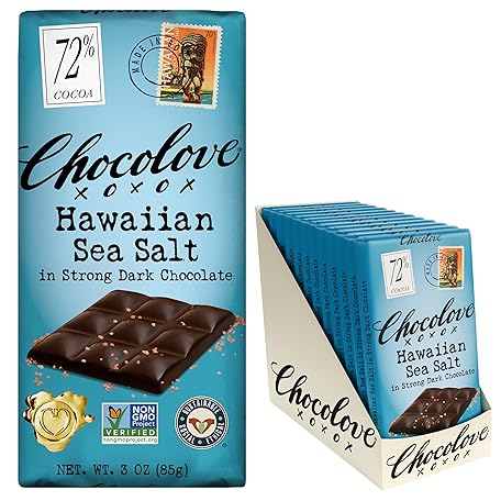 Chocolove Hawaiian Sea Salt Dark Chocolate Bars | 72% Cocoa | Rich and Intense Flavor | Made with Premium Belgium Chocolate | Non-GMO & Gluten-Free, 3.2 oz Bar (12 Pack)