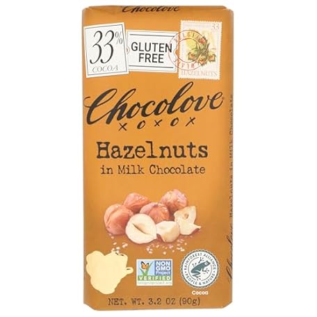 Chocolove Hazelnuts in 33% Cocoa Milk Chocolate Bar, Kosher, Gluten Free & Non-GMO, 3.2 Ounce (Pack of 12)