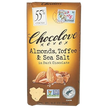 Chocolove Xoxox Bar Almond Toffee Salted, 3.2 Ounce