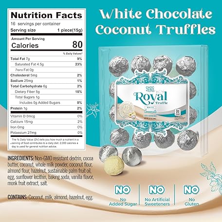 Thông tin sản phẩm ChocZero White Chocolate Coconut Hazelnut Truffles, Zero Added Sugar, Gluten Free, Keto Holiday Gift, High Fiber, 16 Individually Wrapped Pieces, 8.5 Ounce (Pack of 1)