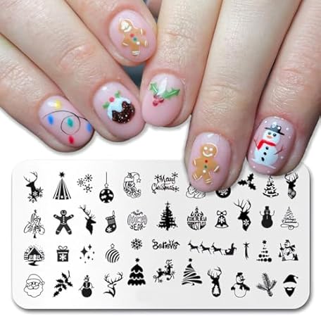 Christmas Nail Stamping Plates,Winter Snowflake Nail Stamper Template Kit Xmas Elk Snowman Nail Stencils Christmas Tree Santa Claus Elk Design Nail Decorations Holiday Nail Supplies for Women Girls