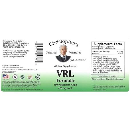 Thông tin sản phẩm Christopher's Original Formulas VRL Formula, Natural Immune Support, 100 Vegetarian Capsules