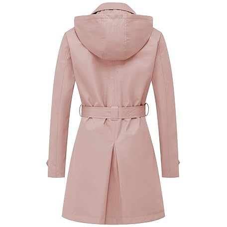 Chrisuno Women's Double Breasted Trench Coats Mid-Length Belted Overcoat Long Dress Jacket with Detachable Hood