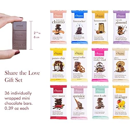 Thông tin sản phẩm Chuao Chocolatier Share the Love Assorted Milk and Dark Mini Gourmet Chocolate Bars Gift Box | Sampler For Holiday, Birthday, Thank You, Corporate Gift Baskets | 36 Bars, 0.39 oz Each