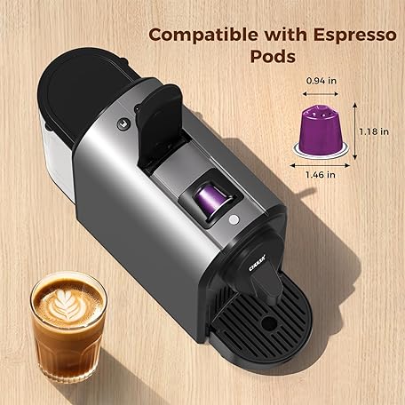 CHULUX Compact Espresso Machine, 20 Bar Single Serve Coffee Maker, Dual Brew Sizes for Espresso and Lungo, 1400W Rapid Brewing, Mystic Gray (Upgrade Model)