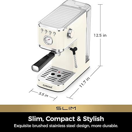 Thông tin sản phẩm CHULUX Slim Espresso Machine with Milk Frother Steam Wand, 20 Bar Professional Italian Pump Espresso Coffee Machine for Home Cappuccino & Latte Maker, Creamy