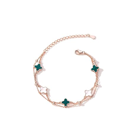 Chunerily S925 Silver 14K Rose Gold plated Clover Lucky Bracelet for Women Green/Black/White/Red Flower Four Leaf Link Bracelets Trendy Jewelry Gifts for Women