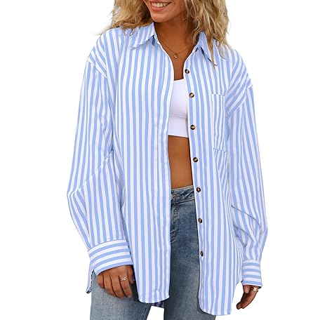 Sản phẩm CHYRII Womens Striped Button Down Shirt Casual Long Sleeve Blouse Top đang được bán với giá ưu đãi là $26.0619 tại nước Mỹ.