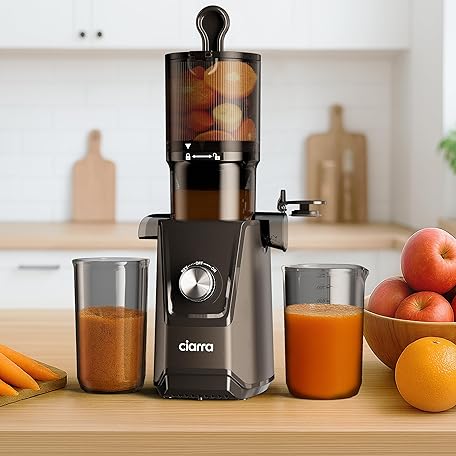 CIARRA Cold Press Juicer - 4.3” XL Feed Chute, Quiet Motor, 406Oz BPA-Free Juicer Machines, 90% Juice Yield Slow Masticating Juicer for Whole Fruits & Vegetables, Easy to Clean