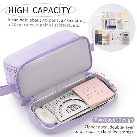 Thông tin sản phẩm CICIMELON Large Capacity Pen Pencil Case with 4 Compartments, Multi-Slot Pencil Pouch Bag Aesthetic School Supplies Organizer for Teen Girls, Women, Adults (Purple)