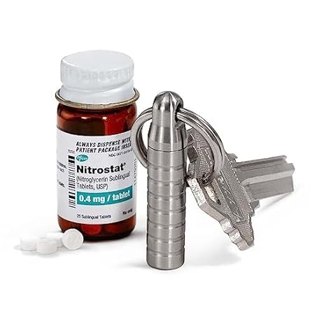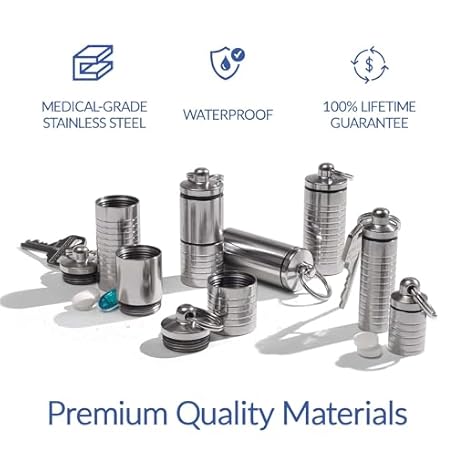 Thông tin sản phẩm Cielo Pill Holders - Extra-Small Nitroglycerin Keychain Holder, Made in USA Stainless Steel Pill Keychain Container, Waterproof Pill Case, Stores 7 Nitro Pills