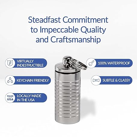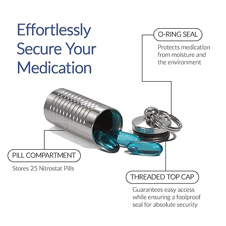 Thông tin sản phẩm Cielo Pill Holders - Wide Single Chamber Nitroglycerin Keychain Pill Holder, Made in USA, Stainless Steel Pill Keychain Container, Waterproof Pill Case with Customizable Chambers