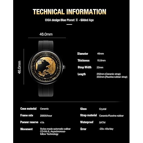 Sản phẩm CIGA Design Mechanical Automatic Watch Blue Planet U Series Stainless Steel/Titanium/Ceramics Case Sapphire Crystal Fluororubber/Ceramics Strap Watches Gifts for Men and Women đang được bán với giá ưu đãi là $1743.128 tại nước Mỹ.