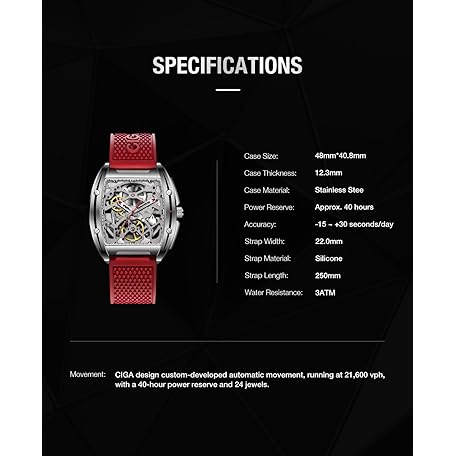 Sản phẩm CIGA Design Z Series Automatic Mechanical Watch, Luxury Skeleton Wristwatch Tonneau with Silicone Strap Stainless Steel Business Dress Waterproof Timepiece Gifts for Men and Women đang được bán với giá ưu đãi là $304.11 tại nước Mỹ.