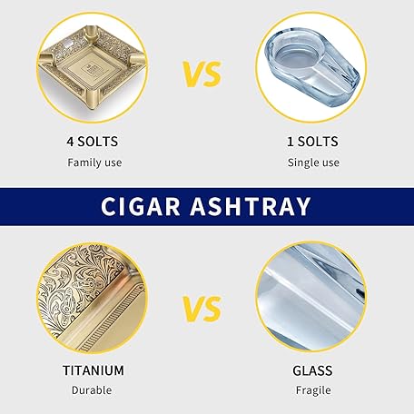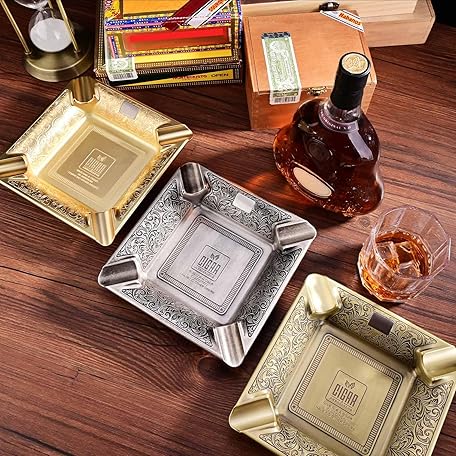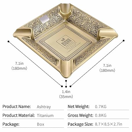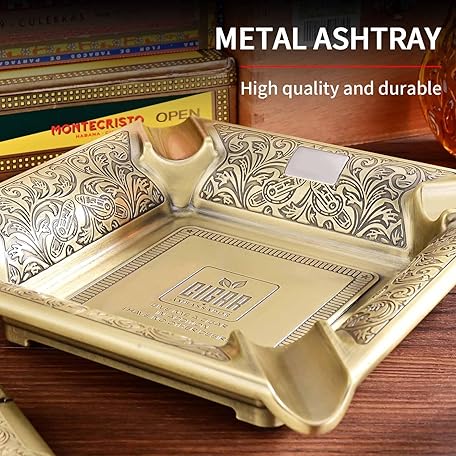Sản phẩm Cigar Ashtray 4 Slots Metal Large Cigarettes Ashtray for Home and Office Gifts for Men(Yellow) đang được bán với giá ưu đãi là $42.4991 tại nước Mỹ.
