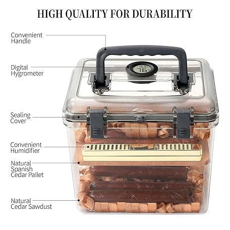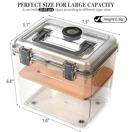 Sản phẩm Cigar Humidor Box/Case with Humidifier and Hygrometer and Spanish Cedar Planks,Can Hold About 30-50 cigars Acrylic Travel Cigar Humidor Top Cover Digital Hygrometer đang được bán với giá ưu đãi là $31.5991 tại nước Mỹ.