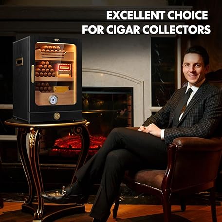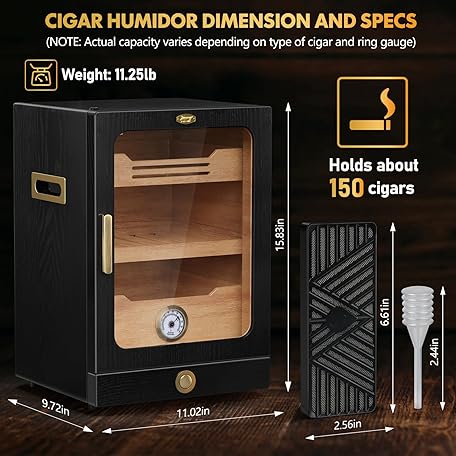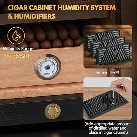 Sản phẩm Cigar Humidor, Desktop Cigar Humidor Cabinet Light Control System with Spanish Cedar Wood Shelves, Hygrometer, 3 Humidifiers and Cigar Accessories Drawer, Father's Day Gift for Men (Black) đang được bán với giá ưu đãi là $130.7891 tại nước Mỹ.