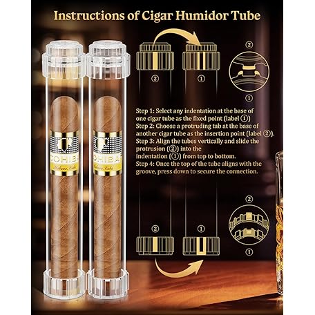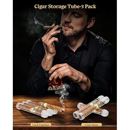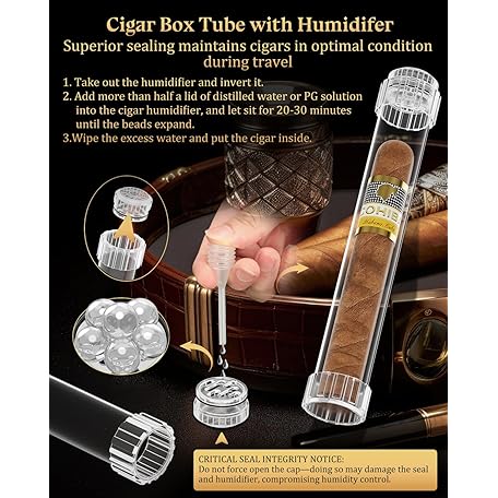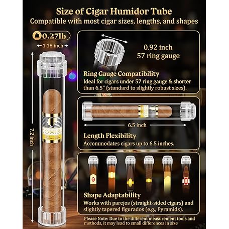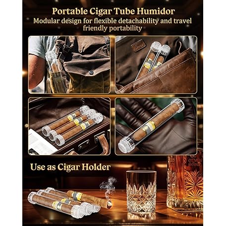 Cigar Humidor Tubes, Travel Humidifier Tube, Acrylic Storage Case with Cigar Holder, Detachable Airtight Triple Tube, Cigar Gift for Men, Ring Guage up to 57