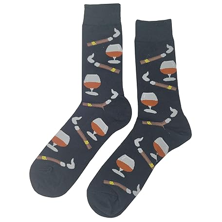 • Cigar Time Dress Socks Funny Novelty Crazy Fun Design Men Size 8-12 Cotton Casual Crew Colorful Funky Fancy Socks Gift for Men