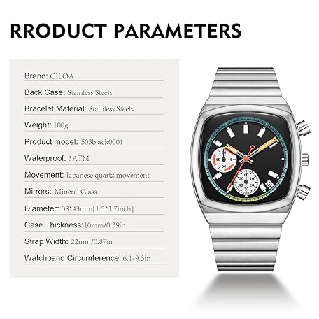 Thương hiệu CILOA là cái tên nổi tiếng được rất nhiều khách hàng trên thế giới chọn lựa. Với kiểu dáng đẹp mắt, sang trọng, sản phẩm CILOA Mens Watches Chronograph Stainless Steel Waterproof Date Analog Business Fashion Wristwatch for Men là sự lựa chọn hoàn hảo nếu bạn đang tìm mua một món cho riêng mình.