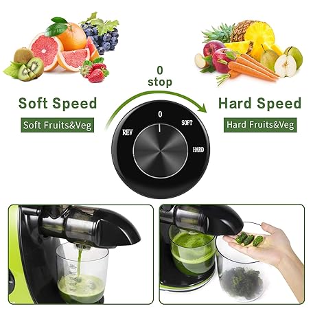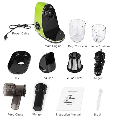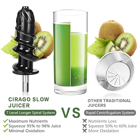 Thông tin sản phẩm CIRAGO Horizontal Cold Press Juicer, Two Speed Adjustments, Slow Masticating Juicer Extractor, Easy to Clean, Silent Motor, Suitable for Vegetables and Fruits, BPA Free (Green)