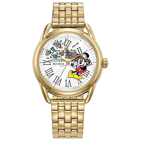 Sản phẩm Citizen Eco-Drive Ladies' Disney Mickey Mouse Flowers "Thru the Mirror" Gold Stainless Steel Watch, 3-Hand, 36mm (Model: FE7093-57W) đang được bán với giá ưu đãi là $245.25 tại nước Mỹ.