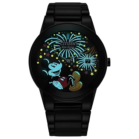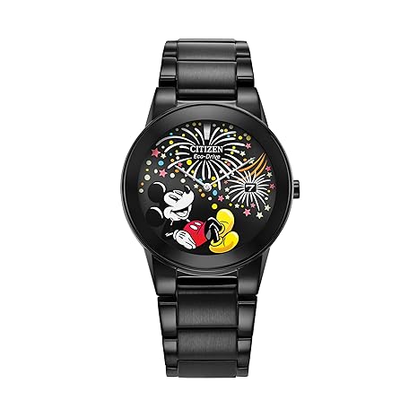 Thông tin sản phẩm Citizen Eco-Drive Mickey Mouse Fiesta Black IP Stainless Steel Watch, 2-Hand Date, Luminous, 40mm (Model: AU1095-57W)