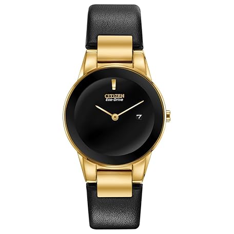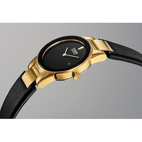 Citizen Ladies Eco-Drive Modern Axiom Watch, Black Leather Strap, Black Dial, 2 Hand, Date (Model: GA1052-04E)