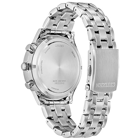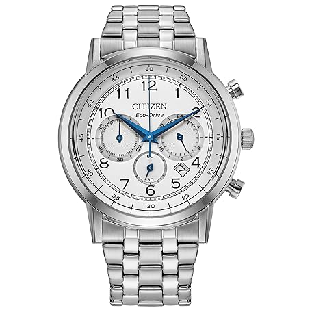 Citizen Men's Eco-Drive Dress Classic Watch, Silver-Tone Stainless Steel Bracelet, White Dial, Chronograph (Model: CA4630-53A)