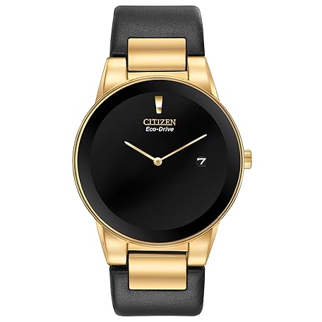 Thông tin sản phẩm Citizen Men's Eco-Drive Modern Eco Axiom Watch, Black Leather Strap, Black Dial, 2 Hand, Date (Model: AU1062-05E)