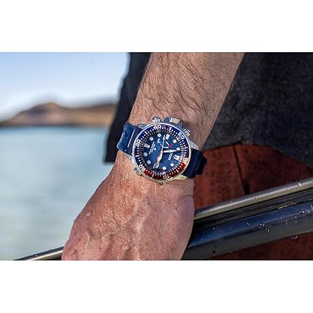 Thông tin sản phẩm Citizen Men's Eco-Drive Promaster Sea Aqualand Depth Meter Watch in Stainless Steel, Blue Polyurethane Strap, Blue Dial, Auto-Start Dive Mode, Date (Model: BN2038-01L)