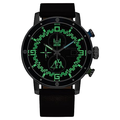 Thông tin sản phẩm Citizen Men's Eco-Drive Star Wars Luke Skywalker Chronograph Stainless Steel Watch with Brown Leather Strap, Blue Bezel, 44mm (Model: CA0768-07W)